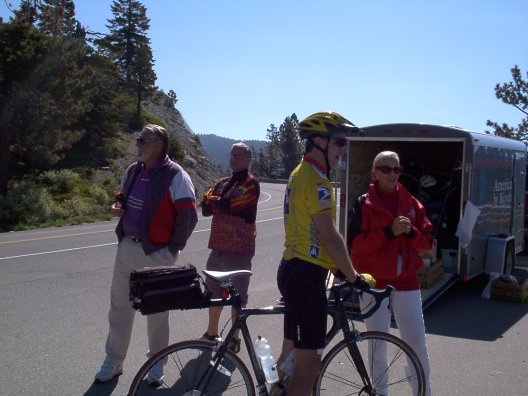 The mini-sag halfway up Mount Rose. Bert, Bruce, Jay, and Emily.