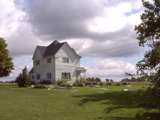 Storm damage. The siding was all the way across the road, and