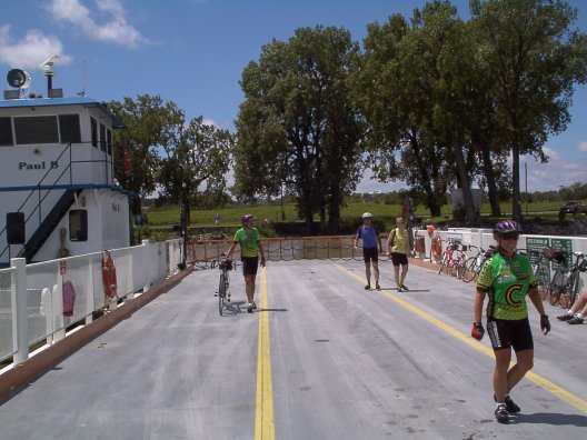 Aboard the ferry Paul B. In the matching green jerseys (and