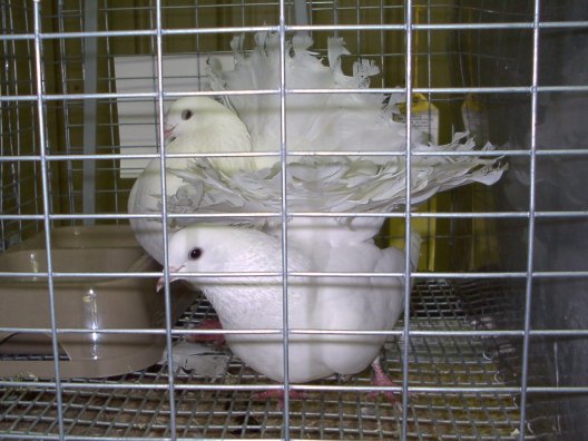 Fancy doves, preening for the audience.