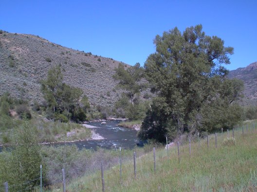 Cimarron River, with cows in the woods.